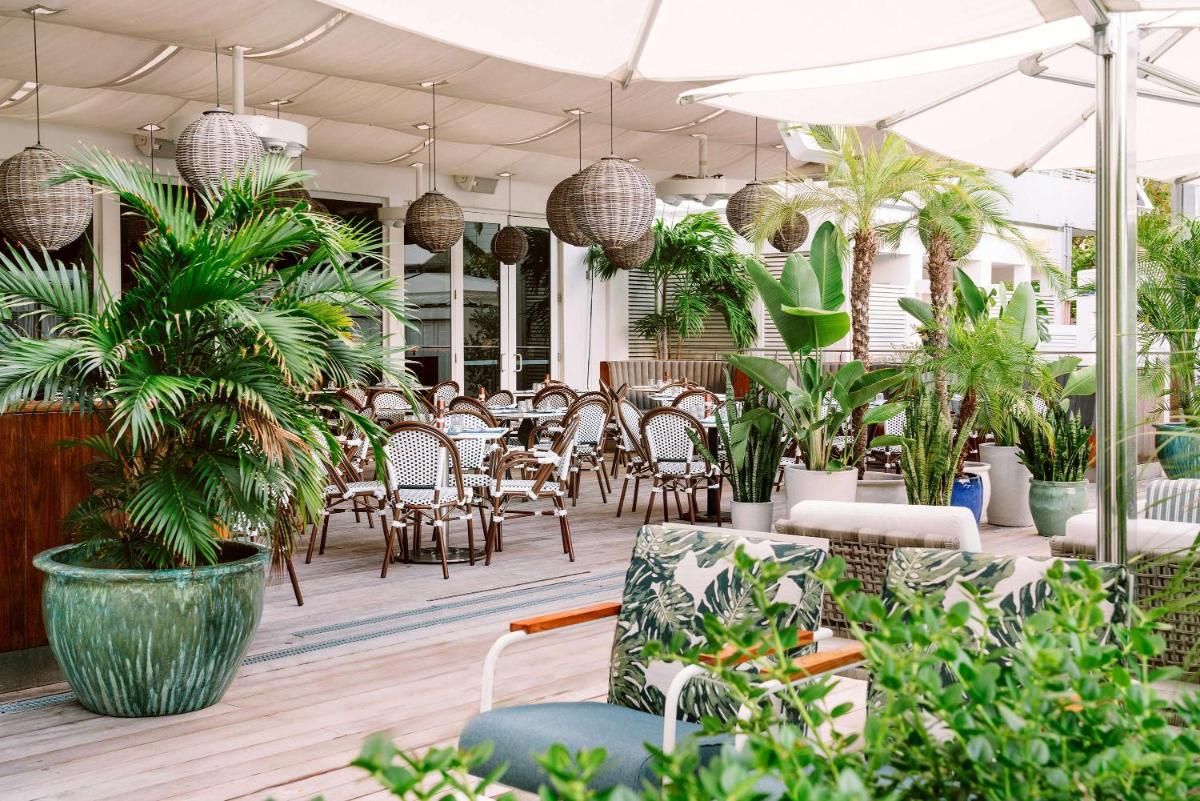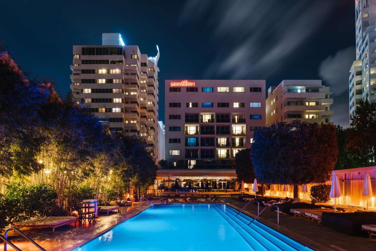 Interior images capture the hotel’s open lobby areas and stylish lounge spaces where contemporary design blends with vintage-inspired details. The oceanfront pool deck is frequently featured, offering wide views of the Atlantic and a relaxed atmosphere surrounded by palm trees and sun loungers.